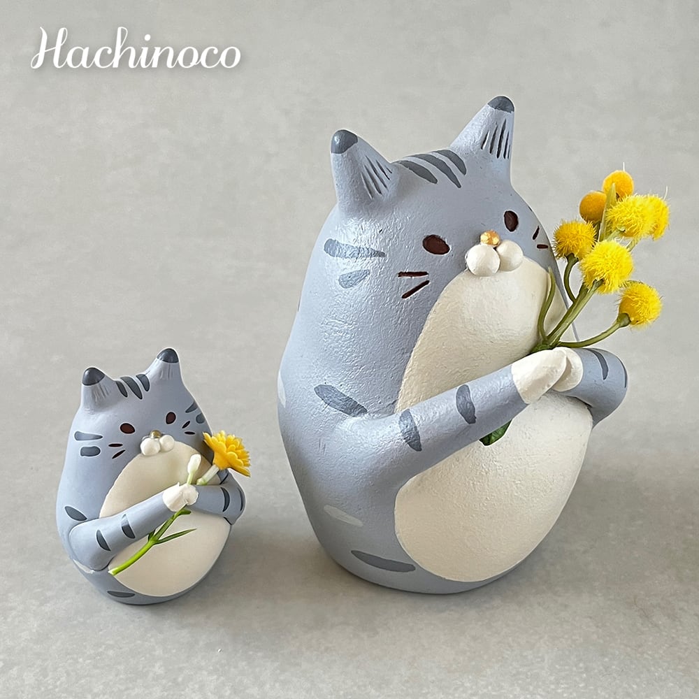 「ハチノコネコの一輪ざしコレクション」の発売を記念して、リアル猫オブジェとセットにして販売いたします。 サバ白の細かい柄まで再現されているので2つを比べて堪能してみてくださいね!