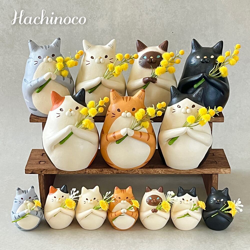 「ハチノコネコの一輪ざしコレクション」の発売を記念して、リアル猫オブジェとセットにして販売いたします。 茶白猫の細かい柄まで細かいところまで再現されているので2つを比べて堪能してみてくださいね!